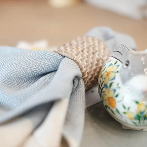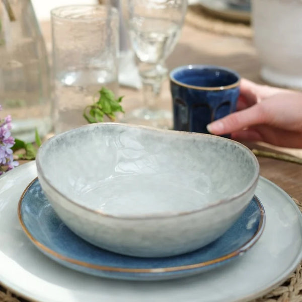 Our Mist tableware collection is available in serene blue and chalky white. Its smooth surface is lightly textured which adds depth and interest, and is evidence of its unique crafted nature.