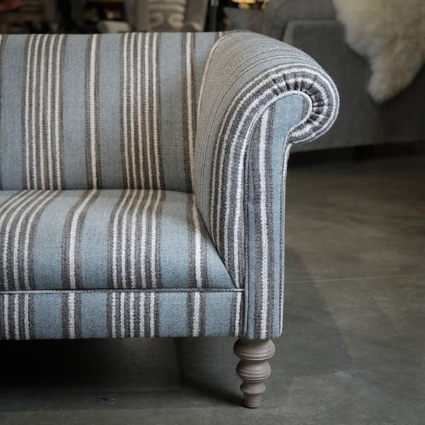 Upholstered in our 'Hampton Stripe’ fabric and with legs in a 'driftwood' finish, our Blake sofa encapsulates the colours of the coast, bringing a touch of its natural and rustic beauty into your living room.