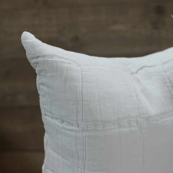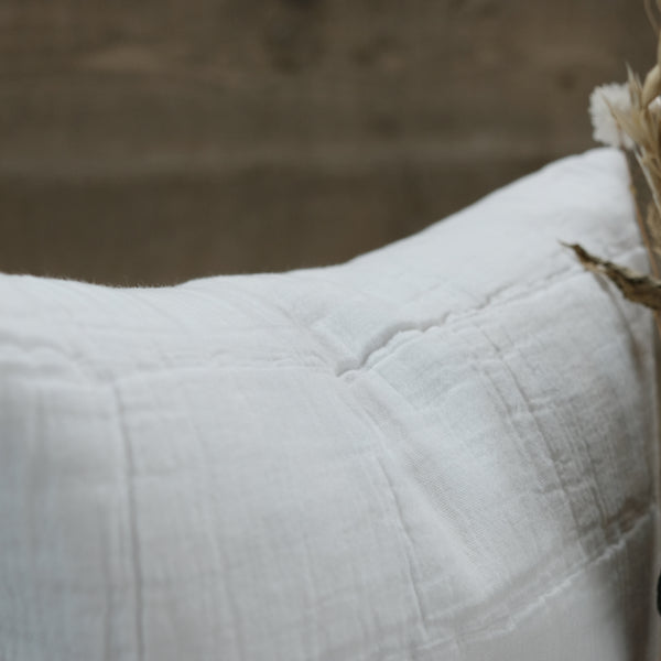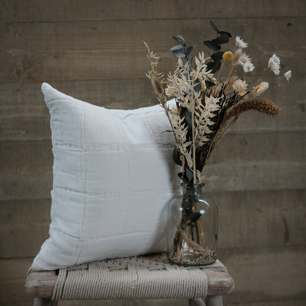 This beautiful, chalky white cushion is made in a super soft cotton. Featuring a textured checked design and filled with a luxury feather pad, it would make a lovely sumptuous addition to a sofa, armchair or bedroom.