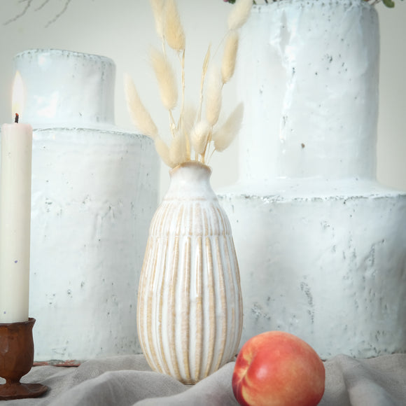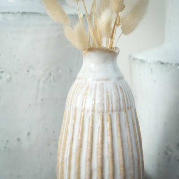 White Ceramic Ribbed Vase