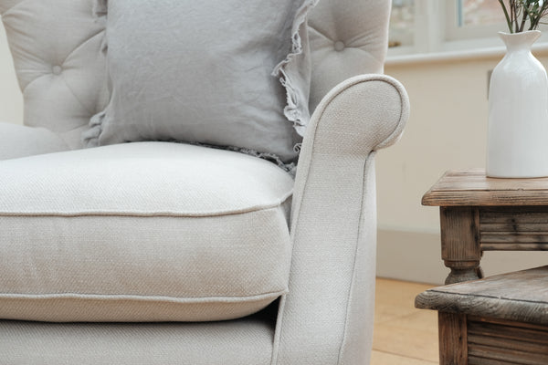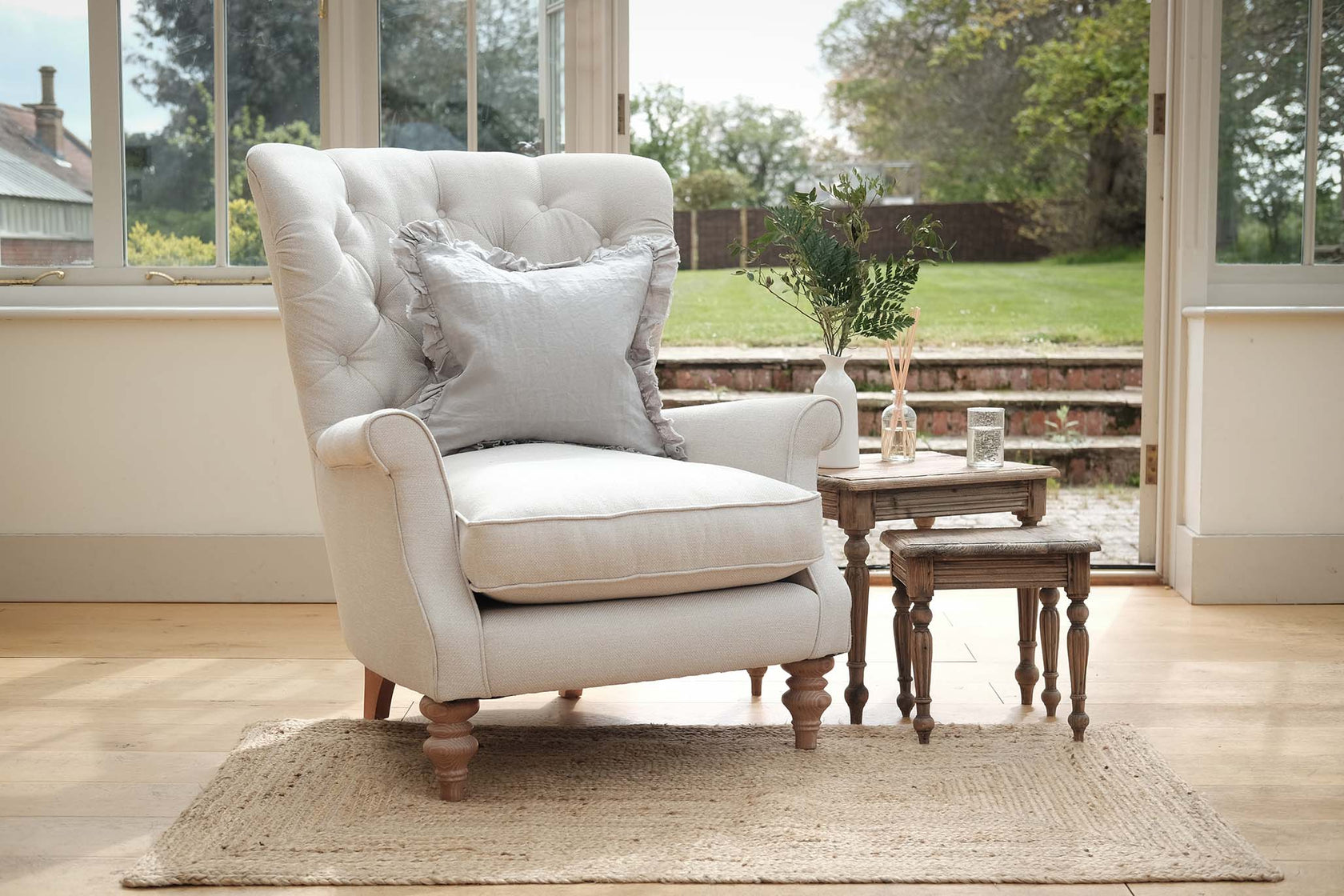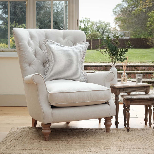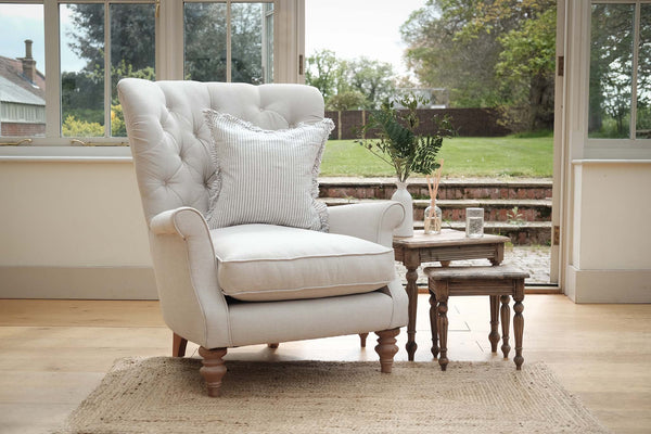 The Ralph Chair is a luxurious buttoned wing chair. Made in the UK, this chair has a hand-picked fully seasoned, hardwood frame