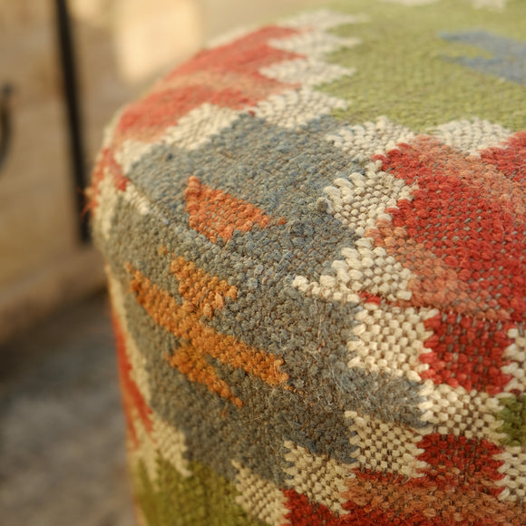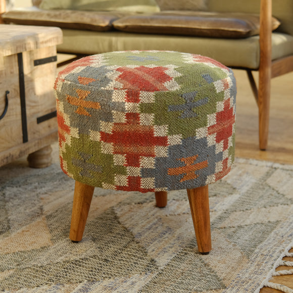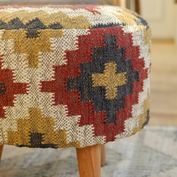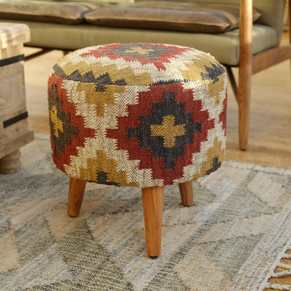 Fira Red Wool Jute Footstool