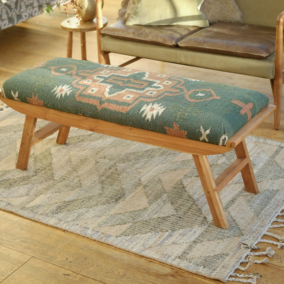 Arya Green Kilim Folding Bench