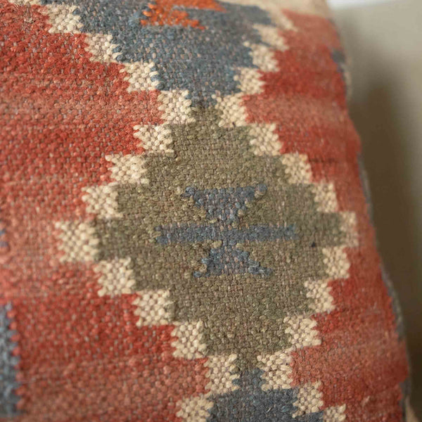 Featuring a beautiful kilim inspired design, this cushion has been handcrafted from recycled materials; collected excess wasted jute and wool that has been reused. Working with artisans in India, this fairly traded cushion was produced using traditional skills and natural materials that nurture traditional ways of life.