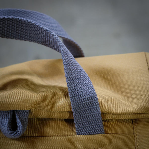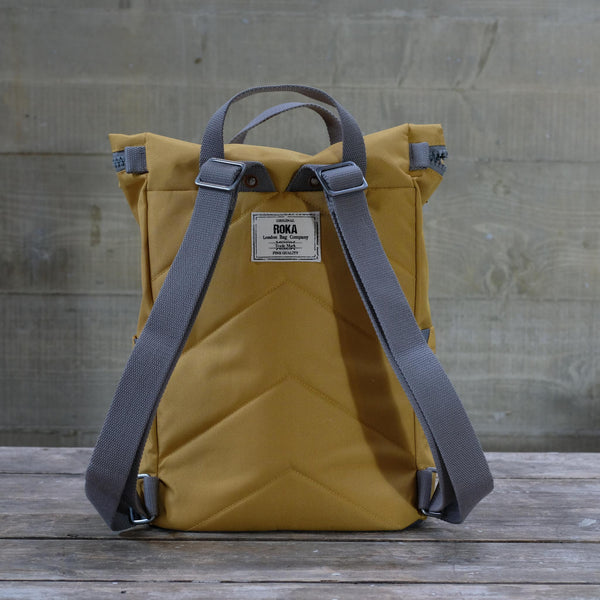 found on beaches. The production of this bag not only uses recycled materials but also uses less energy than traditional production methods. All bags are vegan friendly, made from durable, triple coated and weather resistant canvas. This bag is also available in large and small.