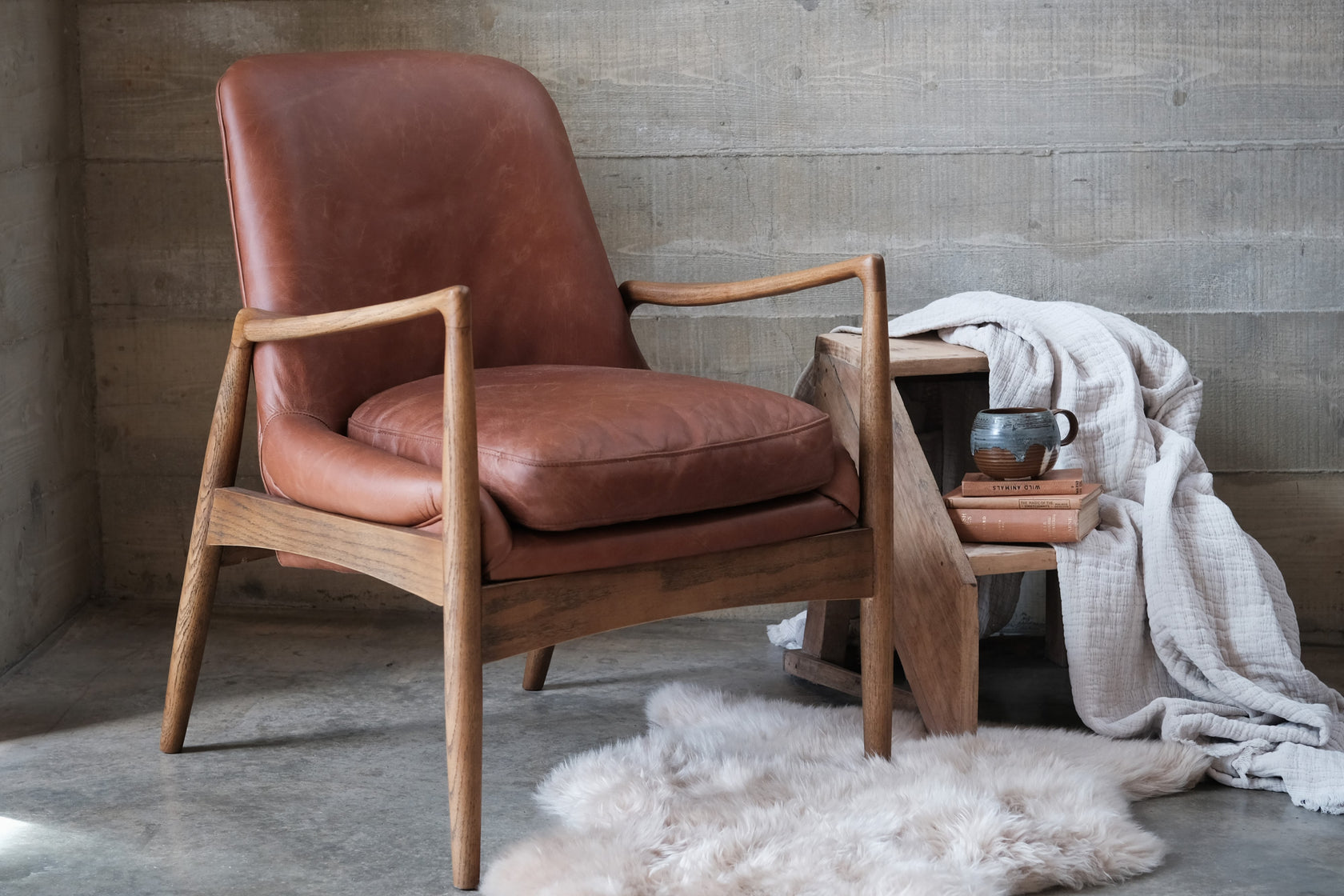 Hinton Tan Leather and Ash Armchair