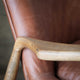 The Hinton chair is upholstered in tan aniline leather with a deep seat and an elegant solid ash frame.