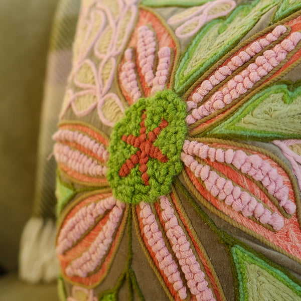 The Linden Cushion in Bayleaf is a wonderful addition to any home. The hand-crafted nature of the beautiful embroidery on this cushion ensures that each piece is unique, with slight variations in patterns and colours, making your cushion one-of-a-kind.