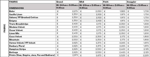 These prices reflect the Martha Collection in 'Enigma' fabric or equivalent grade.