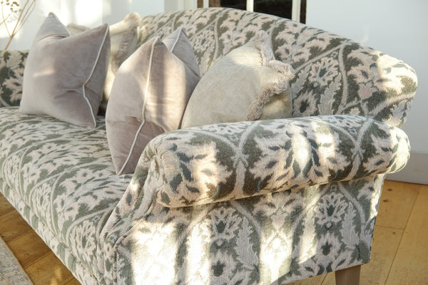 Made in the UK and inspired by timeless elegance with a soft, bohemian twist, the Martha is stylish yet classic. Featuring scrolled arms and an opulent silhouette, the fixed seat and back ensure you can lounge in luxury. The seats are serpentine sprung with a foam overlay. The frame is made from hardwood rails with engineered MDF sections, glued screwed and dowelled for extra rigidity. The frame has a 15-year guarantee and a 2-year guarantee on the fabric.