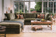 Pictured is the Monty in ‘Astrid - Moss' fabric (Grade B), and is made up of 1 x Footstool Unit, 2 x Corner Arm Units and 2 x Armless Units.