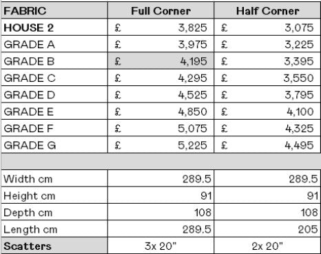 These prices reflect the Rupert Collection in a Grade B fabric.