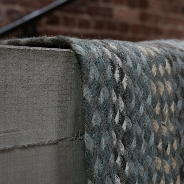 This 100% organic jute rug has been braided by hand in an intricate design. Jute is one of the toughest natural fibres, therefore this rug is extremely hardwearing. It is also water-resistant, made with natural dyes and no harsh chemicals.