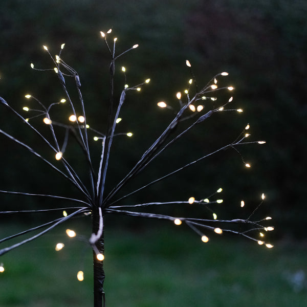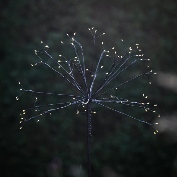 These stunning dandelion lights are the perfect decorative accessory for illuminating the garden. They are solar powered with a built in rechargeable battery. Lights will automatically turn on at dusk and turn off after approximately 6 hours.