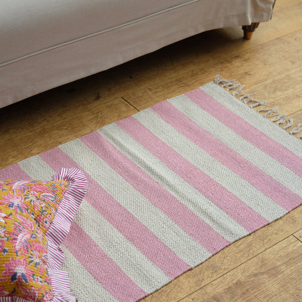 This striking pink rug is made in North India by a team of artisans who are passionate about traditional craftsmanship, and have built a reputation for producing high quality rugs that reflect the rich cultural heritage of India.